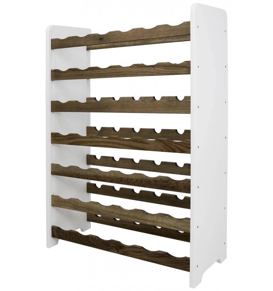 Regał na wino RW-20-42 z serii LUX, to pojemny stojak na butelki o wysokości 91,5 cm, szerokości 62,5 cm i głębokości 26,5 cm. Wąski słupek magazynowy pozwala na magazynowanie 42 egzemplarzy alkoholi. Regały z tej serii, nie wymagają dużej przestrzeni a umieszczone na nich wino dobrze się prezentuje. Dostępne są warianty z leżniami w kolorze naturalnym lub palonym.